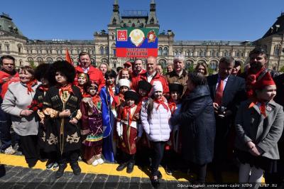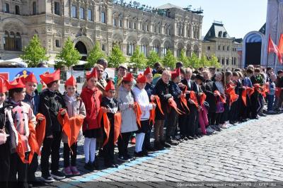 В этот день тысячи мальчишек и девчонок пришли на главную площадь страны, чтобы вступить в ряды юных пионеров. Это ребята из Москвы, Московской области, Республик Северная Осетия, Кабардино-Балкария, Карачаево-Черкессия, Дагестан, Ингушетия, из Пермского края, Белгородской, Брянской, Владимирской, Ивановской, Калужской, Рязанской, Тверской, Тульской областей, Донецкой и Луганской Народных Республик.