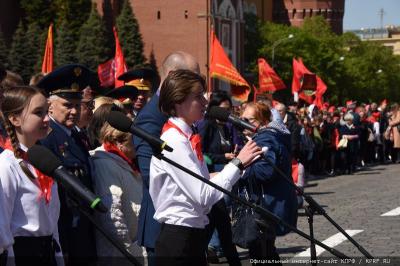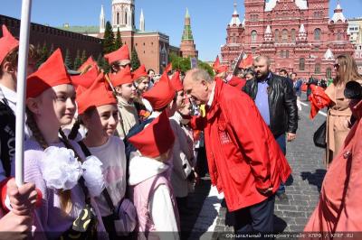 Заместитель Председателя ЦК КПРФ, академик РАН В.И. Кашин подчеркнул преемственность пионерского движения, которое сегодня отмечает 100-летний юбилей. Ведь пионерия прошла свой век с боями. И все мы помним имена Лени Голикова, Марата Казея, Вали Котика и Зины Портновой. Но пионеры сражались не только на фронте, они совершали и трудовые подвиги. И не зря на знамени пионерии горят два ордена Ленина. «Дерзайте! Радуйтесь! Мужайте! И все у вас получится!» - обратился к ребятам Владимир Иванович.