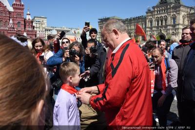 От имени Центрального Комитета Компартии Российской Федерации, от имени Всероссийского штаба протестных действий приветствую вас и поздравляю с вековым юбилеем красногалстучной пионерии. Ура!