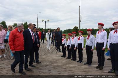 В Горкак Ленинских состоялся и большой детский праздник. В праздничном мероприятии приняли участие пионеры Подмосковья и детские творческие коллективы. Лидера КПРФ Г.А. Зюганова сопровождали Первый заместитель Председателя ЦК КПРФ И.И. Мельников, секретари ЦК КПРФ А.А. Ющенко и М.В. Дробот.