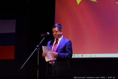 Хочу поблагодарить посольство Китая, нашего друга и товарища Посла, который регулярно предоставляет информацию нашей партии о всех важнейших событиях, происходящих в Китайской Народной Республике. Я там был многократно и горжусь тем, что наша страна вместе с Китаем сегодня решает важнейшие мировые проблемы, укрепляет дружбу, мир и взаимодействие.