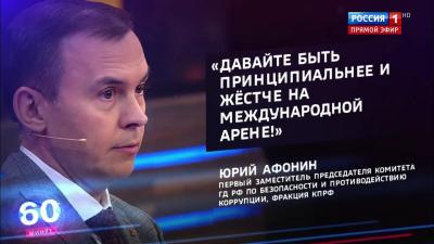 Первый заместитель Председателя ЦК КПРФ Ю.В. Афонин принял участие в программе «60 минут» на телеканале «Россия-1».