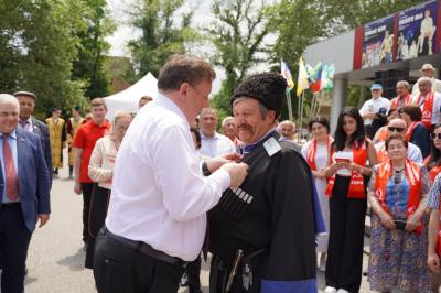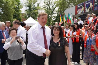 подготовили вокальные и танцевальные номера. Так, чтобы гости могли на эмоциональном уровне погрузиться в традиционную культуру каждого региона. Затем состоялось награждение активистов КПРФ медалями на подиуме перед входом в Северо-Осетинский государственный академический театр имени В.В. Тхапсаева.