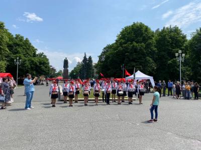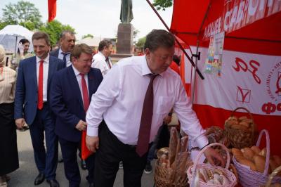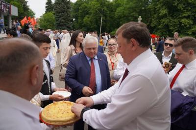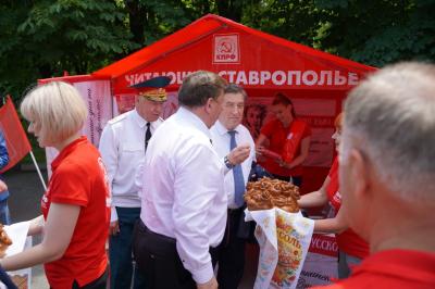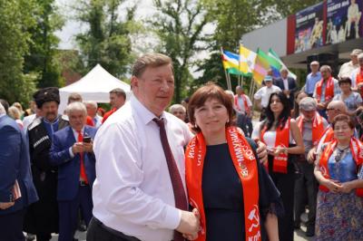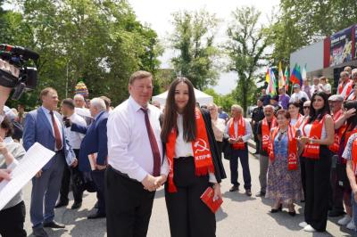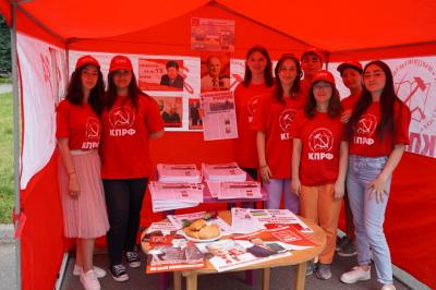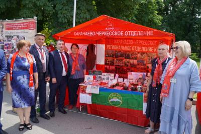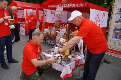 Далее на театральной площади представители каждого регионального отделения КПРФ продемонстрировали свой национальный колорит. На площади развернули красные палатки с региональными агитационными материалами, установили шатры с традиционной национальной кухней,