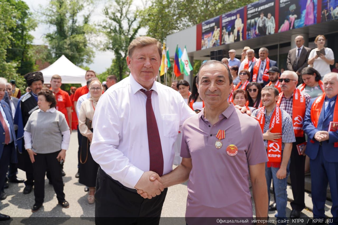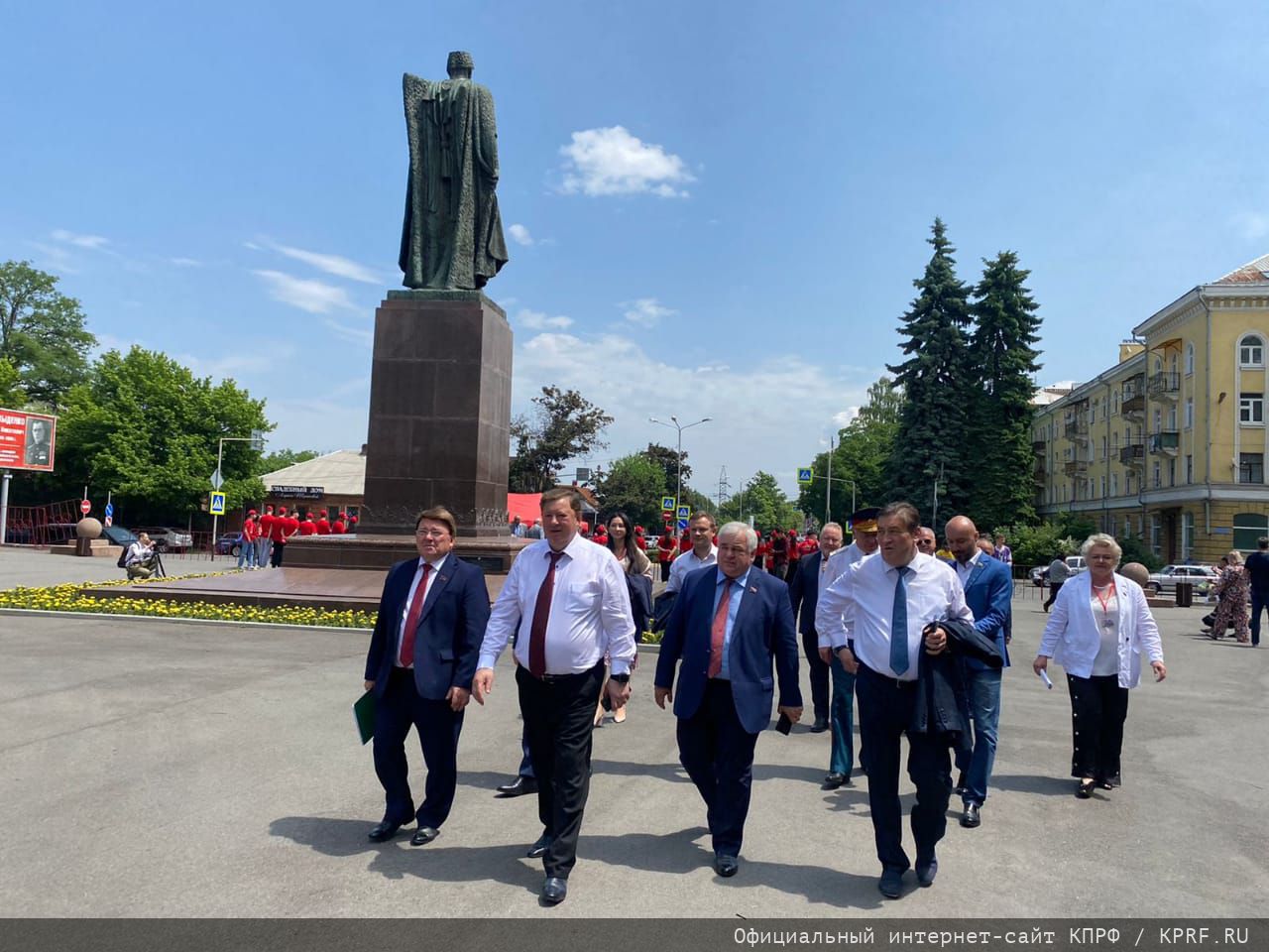 В среду, 8 июня, в город воинской славы Владикавказ прибыла делегация из Москвы во главе с заместителем Председателя ЦК КПРФ В.И. Кашиным. В неё вошли: председатель ЦКРК КПРФ Н.Н. Иванов, секретарь ЦК КПРФ, первый заместитель Председателя ЦС СКП—КПСС К.К. Тайсаев, члены Президиума и секретари ЦК КПРФ Г.П. Камнев и С.П. Обухов, первый секретарь ЦК ЛКСМ РФ В.П. Исаков, секретарь ЦК КПРФ С.Э. Аниховский, член ЦК КПРФ генерал-лейтенант В.И. Соболев. Прибыли и делегации региональных партийных отделений Северо-Кавказского федерального округа: Дагестана, Чечни, Ингушетии, Кабардино-Балкарии, Карачаево-Черкесии, Ставропольского края.