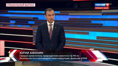 Первый заместитель Председателя ЦК КПРФ Ю.В. Афонин принял участие в программе «60 минут» на телеканале «Россия-1».