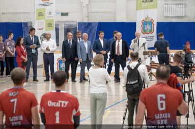 Обращаясь к участникам мероприятия, Андрей Евгеньевич Клычков поздравил их с завершением ставшего традиционным спортивного турнира. Он выразил радость, что после перерыва, связангого с пандемией, спортсмены вернулись на новую площадку. Губернатор сообщил о скором возведении нового спортивного объекта - крытого манежа. Он поблагодарил спортсменов за игру, а Г.А. Зюганова - за внимание к своему родному региону. В знак благодарности А.Е. Клычков вручил лидеру коммунистов футболку с международного чемпионата по пляжному волейболу.