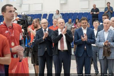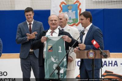 По завершении матча команды выстроились для торжественной церемонии. Об истории возникновения турнира рассказал заслуженный работник физической культуры РФ В.А. Зубов. Он сообщил о том, что первый турнир прошел в 2018, когда при поддержке лидера коммунистов был достроен спорткомплекс. Выступающий подчеркнул, что заслуга в создании спортивной базы и организации турнира принадлежит А.Е. Клычкову и Г.А. Зюганову, с которым он знаком с 60-х годов.