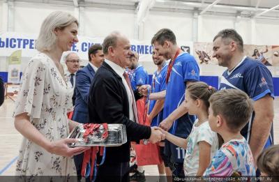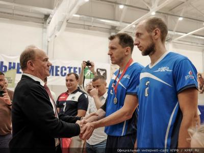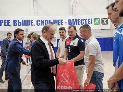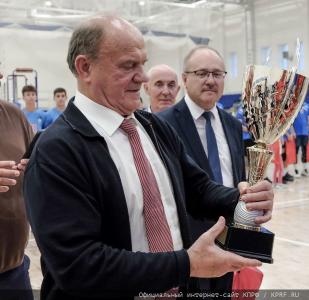 Далее слово взял Г.А. Зюганов. Поблагодарив спортсменов, он выразил надежду, что этот чемпионат продолжится. Лидер коммунистов рассказал о том, что сам в юности занимался спортом и играл в волейбол. Он также сообщил, что семья продолжает спортивные традиции, и один из внуков, которому всего 17 лет, может стать участником сборной Москвы по волейболу. Кроме того, Председатель ЦК КПРФ напомнил об успехах спортивного клуба КПРФ, ставшего чемпионом по ряду видов спорта, в том числе в соревнованиях по мини-футболу, волейболу, шахматам, силовым видам спорта.