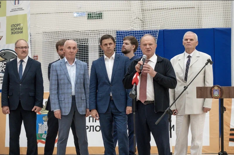 По завершении матча команды выстроились для торжественной церемонии. Об истории возникновения турнира рассказал заслуженный работник физической культуры РФ В.А. Зубов. Он сообщил о том, что первый турнир прошел в 2018 году, когда при поддержке лидера коммунистов был достроен спорткомплекс. Выступающий подчеркнул, что заслуга в создании спортивной базы и организации турнира принадлежит А.Е. Клычкову и Г.А. Зюганову, с которым он знаком с 60-х годов.