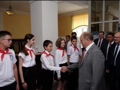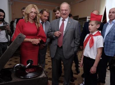 Почетных гостей встретила директор дворца пионеров Н.А. Матушкина. Она познакомила лидера коммунистов с историей детского учреждения, основанного в 1924 году, а также продемонстрировала экспонаты выставки, посвященной пионерии. Участники мероприятия прослушали на старом патифоне запись обращения И.В. Сталина к народу 9 мая 1945 года. Г.А. Зюганов пообщался с пионерами, выстроившимися для приветствия в линейку.
