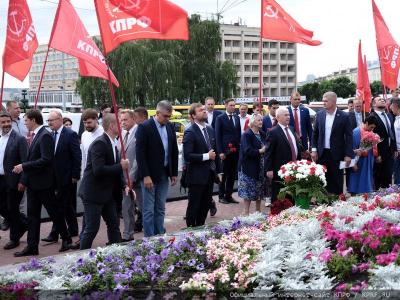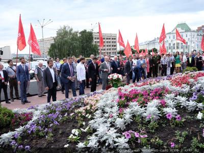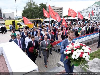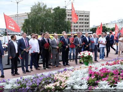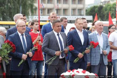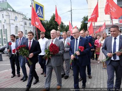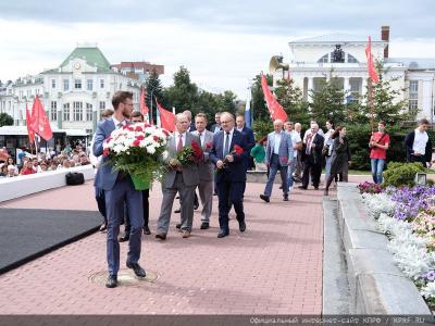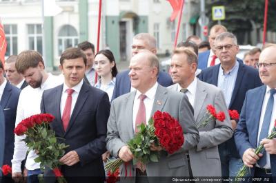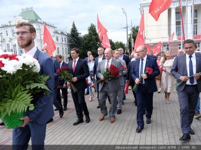 В четверг, 4 августа, в Орле на площади Ленина состоялась церемония возложения цветов к памятнику В.И.Ленину. В мероприятии приняли участие как члены КПРФ во главе с Председателем ЦК КПРФ Г.А. Зюгановым и Первым секретарем Орловского обкома КПРФ В.Н. Иконниковым, так и представители руководства города и области во главе с губернатором А.Е. Клычковым.