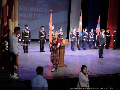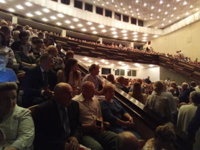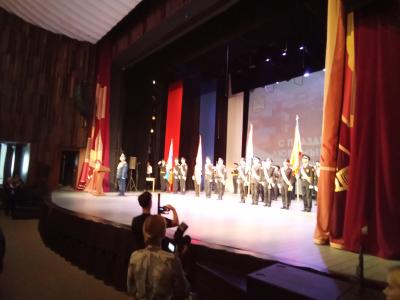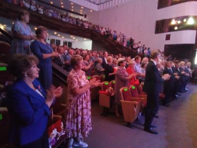 По завершении торжественного собрания состоялся праздничный концерт. Песню про город Орел зал приветствовал стоя бурными апплодисментами.