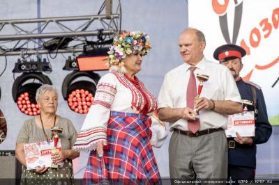 Затем прошла торжественная церемония награждения руководителей музыкальных ансамблей. Награды вручали участникам фестиваля вручили Г.А. Зюганов и А.Е. Клычков.