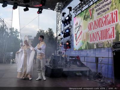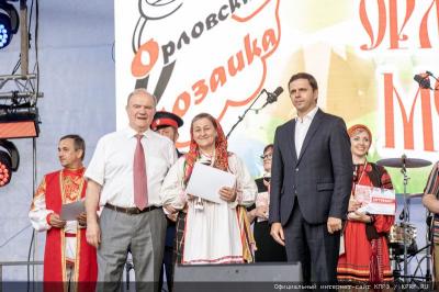 В четверг, 4 августа, Председатель ЦК КПРФ Г.А. Зюганов совместно с главой Орловской области А.Е. Клычковым принял участие в V Международном фольклорном фестивале "Орловская мозаика". Мероприятие прошло на центральной площади города - площади Ленина.