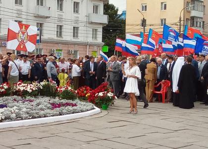 Минутой молчания участники митинга почтили память воинов-освободителей, а также тех, кто сегодня ценой своей жизни защищает нашу страну.
