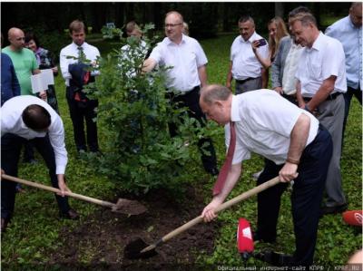 Г.А. Зюганов и А.Е. Клычков в честь векового юбилея СССР и музея-заповедника посадили два молодых деревца, выросших из желудей тургеневского дуба. Также почетные гости высадили берёзовую аллею.