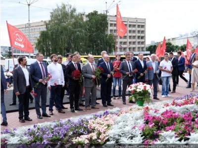 Далее делегация КПРФ проследовала к стеле Воинской Славы где Г.А. Зюганов и А.Е. Клычков возложили гирлянду и цветы.