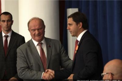 Далее состоялась торжественная церемония награждения, которую провели губернатор Орловской области А.Е. Клычков, Председатель ЦК КПРФ Г.А. Зюганов, мэр Орла Ю.Н. Парахин, Первый секретарь Орловского обкома КПРФ В.Н. Иконников.