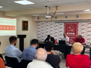 Семинар вели товарищи из ЦК КПРФ – секретарь ЦК КПРФ по агитационно-пропагандистской работе, руководитель Центра политической учебы ЦК КПРФ Станислав Эдуардович Аниховский и заведующий отделом интернет-коммуникаций КПРФ, заместитель руководителя Центра политической учебы ЦК КПРФ Марат Сосланович Музаев.