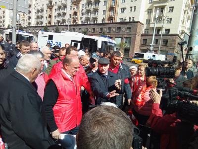 С самого начала акции представители правоохранительных органов пытались помешать общению коммунистов с горожанами, требуя через громкоговорители разойтись. Не обошлось без задержаний - мужчину, возмущавшегося поведением полиции, увели в автозак. Однако, провокация не удалась. Председатель ЦК КПРФ Г.А. Зюганов в сопровождении своих заместителей В.И. Кашина и Д.Г. Новикова пообщался с собравшимися на акцию. Также лидер коммунистов побеседовал с кандидатами-коммунистами, ознакомился с образцами выборной агитации.