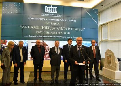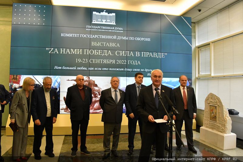 20 сентября в Государственной Думе открылась выставка «ZA нами Победа. Сила в правде», организатором которой выступил Комитет по обороне. На открытии выставки выступил Председатель ЦК КПРФ, Руководитель фракции КПРФ в Госдуме Г.А. Зюганов. Выставка пройдет до 23 сентября 2022 года