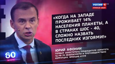 В эфире программы «60 минут» обсуждались итоги встречи лидеров стран Шанхайской организации сотрудничества (ШОС) в Самарканде, ряд других событий международной повестки, а также ход специальной военной операции на Украине и Донбассе.