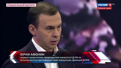 Первый заместитель Председателя ЦК КПРФ Ю.В. Афонин выступил в программе «60 минут» на канале «Россия-1».