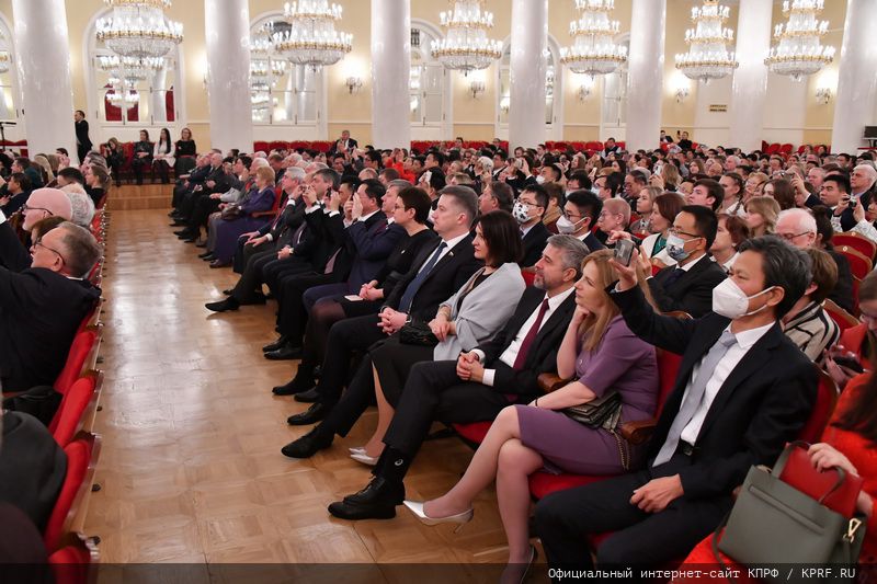 На концерте также присутствовал первый заместитель Председателя ЦК КПРФ Д.Г. Новиков. В ходе церемонии открытия вечера заместитель Министра иностранных дел Российской Федерации Андрей Руденко огласил официальное поздравление в адрес Общества от Президента России Владимира Путина, а Полномочный министр, временный поверенный в делах Китайской Народной Республики в России Сунь Вэйдун зачитал приветствие от лидера КНР Си Цзиньпина.