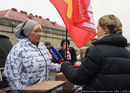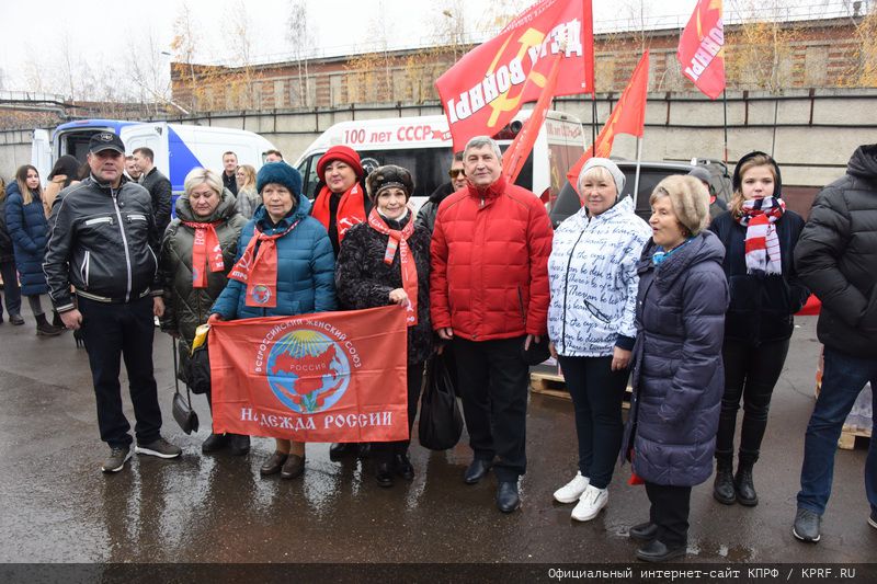 - Мне прежде всего хотелось бы поздравить всех присутствующих со 105-й годовщиной Великого Октября! Мы сегодня отправляем с этим конвоем группу наших ребят с двумя первыми секретарями, которые записались добровольцами. Хотелось бы поблагодарить все наши партийные организации, а в этом конвое участвовали более 30 городских партийных организаций. Поблагодарить наши общественные организации «Дети войны», «Женщины Подмосковья», «Союз советских офицеров», которые во всех конвоях принимают активное участие. Хотелось бы отметить, что сейчас все больше других общественных организаций выходят на нас, чтобы участвовать в наших гуманитарных конвоях. Хотелось бы пожелать победы, мира, чтобы те, кто находится в окопах на передовой вернулись живыми, не ранеными. Конечно, мира жителям многострадальной донецкой земли. Мы в них верим и хотим, чтобы все это быстрее закончилось.