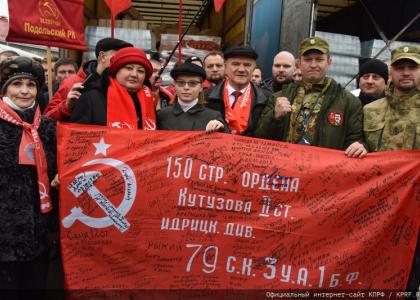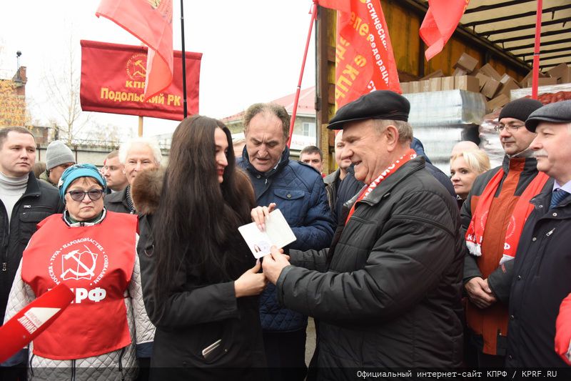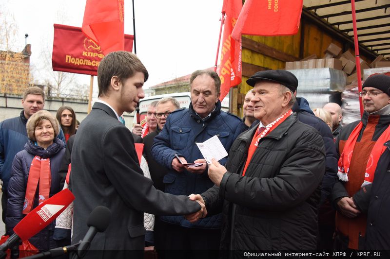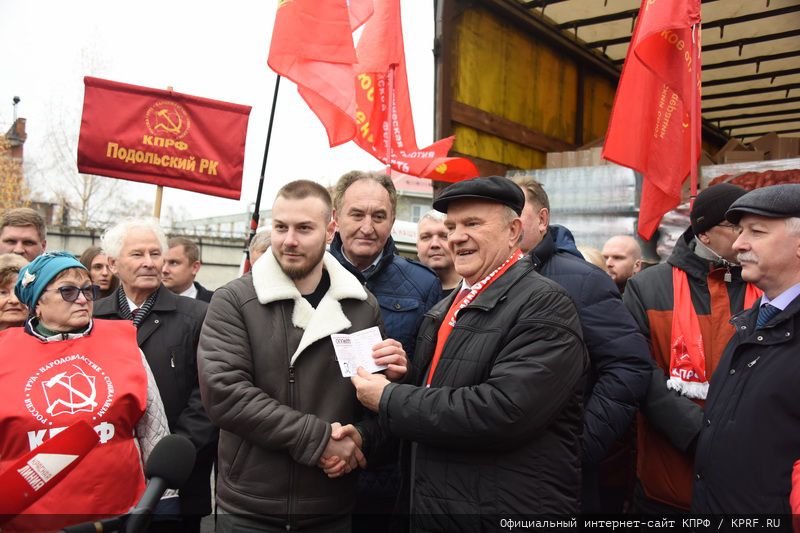 В конце митинга Председатель ЦК КПРФ Геннадий Зюганов вручил партийные и комсомольские билеты новым товарищам.