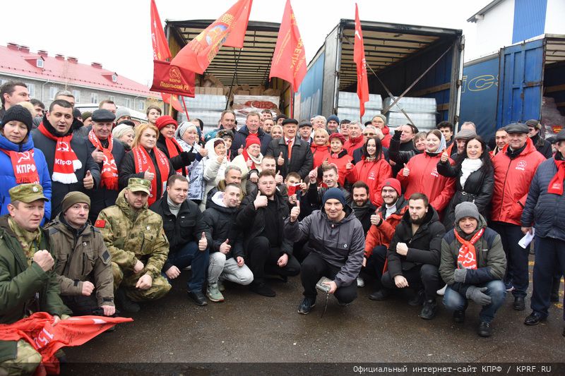 В отправке гуманитарного груза приняли активное участие Председатель ЦК КПРФ Г.А. Зюганов, заместитель Председателя ЦК КПРФ В.И. Кашин, Первый секретарь МК КПРФ, депутат Государственной Думы - Н.И. Васильев, депутаты Мособлдумы: второй секретарь МК КПРФ, заместитель Председателя Мособлдумы К.Н. Черемисов, секретарь МК КПРФ, зампред Мособлдумы, руководитель фракции КПРФ в Мособлдуме – А.А. Наумов, а также В.Н. Барсуков, Е.Ф. Мокринская, Т.Е. Никитас, Т.А. Ордынская. Также приняли участие депутаты Мосгордумы, во главе с руководителем фракции КПРФ Н.Г. Зубрилиным. Большой вклад внесли в формирование гуманитарного конвоя коммунисты Подмосковья, секретари МК КПРФ В.Н. Стасюк, С.А. Стрельцов, руководитель аппарата фракции КПРФ в Мособлдуме К.Ю. Елисеев, сотрудники МК КПРФ А.Н. Васильев, К.А. Баранов. А также коммунисты Москвы, Владимира, Костромы, Твери и Тулы, директор «Совхоза им. Ленина» П.Н. Грудинин, Московская областная организация «Русский Лад», МОРО ООД ВЖС «Надежда России» и другие товарищи.