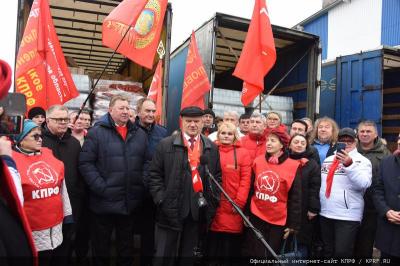 В понедельник, 7 ноября, в годовщину Великого Октября, ЦК КПРФ и Общероссийский Штаб протестного движения с территории подмосковного совхоза имени Ленина отправили очередной, 103-й гуманитарный конвой в поддержку участвующих в военной спецоперации российских солдат, жителей Донецкой и Луганской республик, Херсонской и Запорожской областей. В мероприятии принял участие Председатель ЦК КПРФ Г.А. Зюганов.