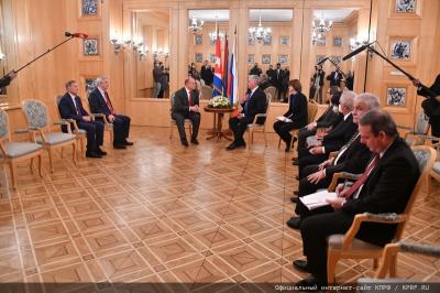 21 ноября состоялась встреча Председателя ЦК КПРФ, руководителя фракции КПРФ в Государственной Думе Г.А. Зюганова и Первого заместителя Председателя ЦК КПРФ, Первого заместителя Председателя Государственной Думы И.И. Мельникова с находящимся в Москве с официальным визитом Президентом Республики Куба, Первым секретарем ЦК Коммунистической партии Кубы Мигелем Диас-Канелем Бермудесом.