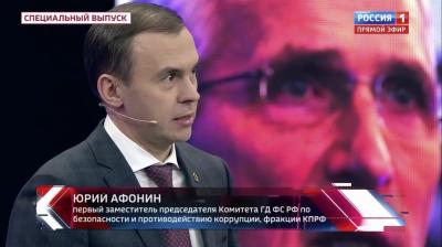 Первый заместитель Председателя ЦК КПРФ Ю. В. Афонин принял участие в программе «60 минут» на телеканале «Россия-1».