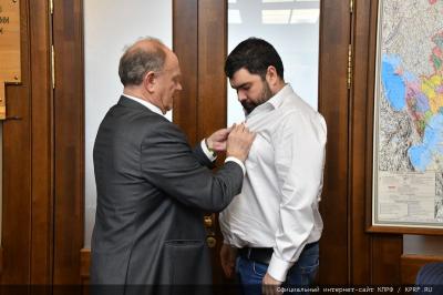 14 декабря Председатель ЦК КПРФ Г.А. Зюганов вручил памятные медали "В ознаменование 100-летия образования СССР" большой группе сотрудников аппарата ЦК КПРФ и фракции КПРФ в Государственной Думе.