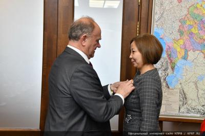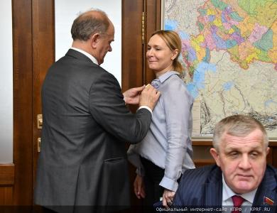 Г.А. Зюганов вручил памятные медали "В ознаменование 100-летия образования СССР" большой группе сотрудников аппарата ЦК КПРФ и фракции КПРФ в Госдуме