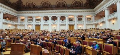 20 декабря в Таврическом дворце состоялась международная научно-практическая конференция «Возрождение и преобразование советских народов: проблемы теории и практики», которая была приурочена к столетнему юбилею СССР. В мероприятии приняли участие эксперты и ученые, партийные руководители, депутаты Государственной Думы, Законодательного Собрания Санкт-Петербурга, Законодательного Собрания Ленинградской области, активисты КПРФ, комсомола и союзных организаций, делегаты слета актива ЛКСМ РФ из регионов Северо-Западного Федерального округа, представители иностранных государств. Соорганизатором форума выступила Петровская академия наук и искусств