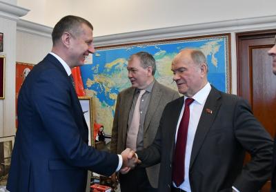 На встрече присутствовали первый заместитель Председателя ЦК КПРФ Ю.В. Афонин и заместитель Председателя ЦК КПРФ Л.И. Калашников.