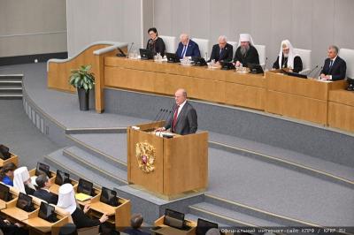 В Государственной Думе в рамках XXXI Международных Рождественских образовательных чтений на тему «Глобальные вызовы современности и духовный выбор человека» проходят XI Рождественские парламентские встречи. 26 января перед участниками форума выступил Председатель ЦК КПРФ, Руководитель фракции КПРФ в Госдуме Г.А. Зюганов.