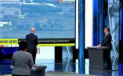 Дневной блок программы начался с кадров последствий землетрясения в Турции и Сирии. После этого речь зашла о визите Владимира Зеленского в Великобританию. На встрече с премьер-министром этой страны Риши Сунаком обсуждалась помощь Киеву, в том числе поставки вооружений. В студии были высказаны разные предположения относительно причин поездки. Украинская журналистка Янина Соколовская, например, утверждала, что это указывает на подготовку переговоров с участием России.