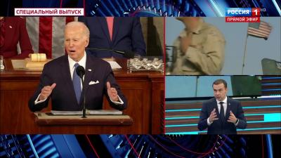 Главной темой обсуждения в студии стало выступление президента США Джо Байдена с ежегодным посланием к конгрессу. Стержневой мыслью выступления стало: Америка ведет мир, причем, конечно, в правильном направлении, эффективно решая глобальные проблемы – продовольствия, безопасности, изменения климата и так далее.