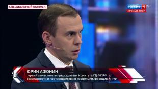 Первый заместитель Председателя ЦК КПРФ Ю. В. Афонин принял участие в программе «60 минут» на телеканале «Россия-1».