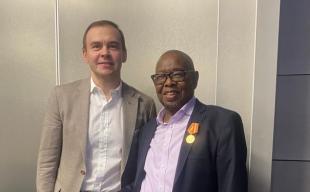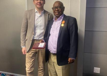 В заключение встречи Юрий Афонин вручил Блейду Нзиманде памятную медаль, посвященную 100-летию образования СССР. Эта награда подчеркнула тот факт, что лидер южноафриканских коммунистов продолжает нести тот свет прогресса и социальной справедливости, который был зажжен в первом социалистическом государстве планеты Земля.
