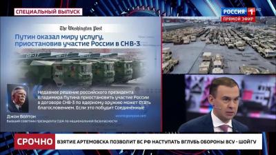 Юрий Афонин прокомментировал заявление экс-советника президента США по национальной безопасности Джона Болтона о том, что Соединенным Штатам надо резко нарастить число своих ядерных боеголовок. В связи с этим тезисом Болтон назвал решение российского президента Владимира Путина приостановить участие России в договоре СНВ-3 «благословением», потому что это снимает с Вашингтона юридические ограничения в наращивании ядерных вооружений.