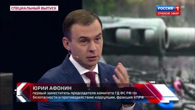 Первый заместитель Председателя ЦК КПРФ Ю. В. Афонин принял участие в программе «60 минут» на телеканале «Россия-1».