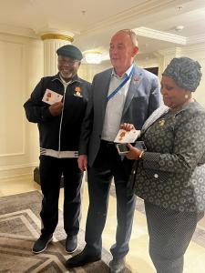 Член ЦК КПРФ, Главный политический советник Председателя ЦК КПРФ В.Н. Тетекин по поручению Г.А. Зюганова в торжественной обстановке вручил медали ЦК «100 лет образования СССР» Председателю Парламента ЮАР Н.Маписа-Нкакула и бывшему Советнику Президента ЮАР по национальной безопасности Ч.Нкакула.