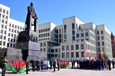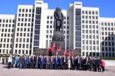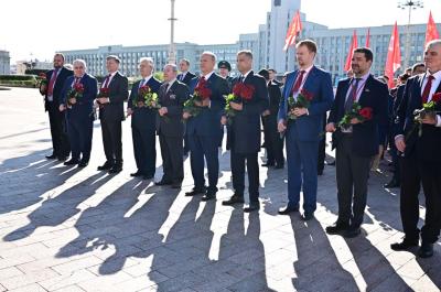Утром 22 апреля 2023 г. Председатель ЦК КПРФ Геннадий Андреевич Зюганов принял участие в возложении цветов памятнику В.И. Ленину в Минске.