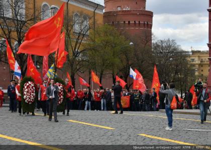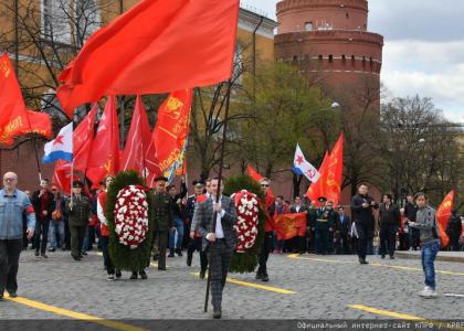 Торжественное шествие возглавили первый заместитель Председателя ЦК КПРФ Ю.В. Афонин и заместитель Председателя ЦК КПРФ, Руководитель Общероссийского штаба протестных действий В.И. Кашин.