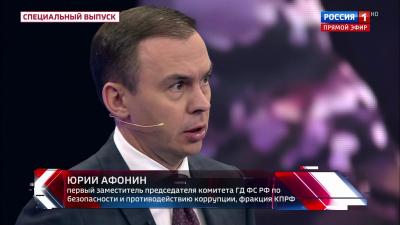 Первый заместитель Председателя ЦК КПРФ Ю. В. Афонин принял участие в программе «60 минут» на телеканале «Россия-1».